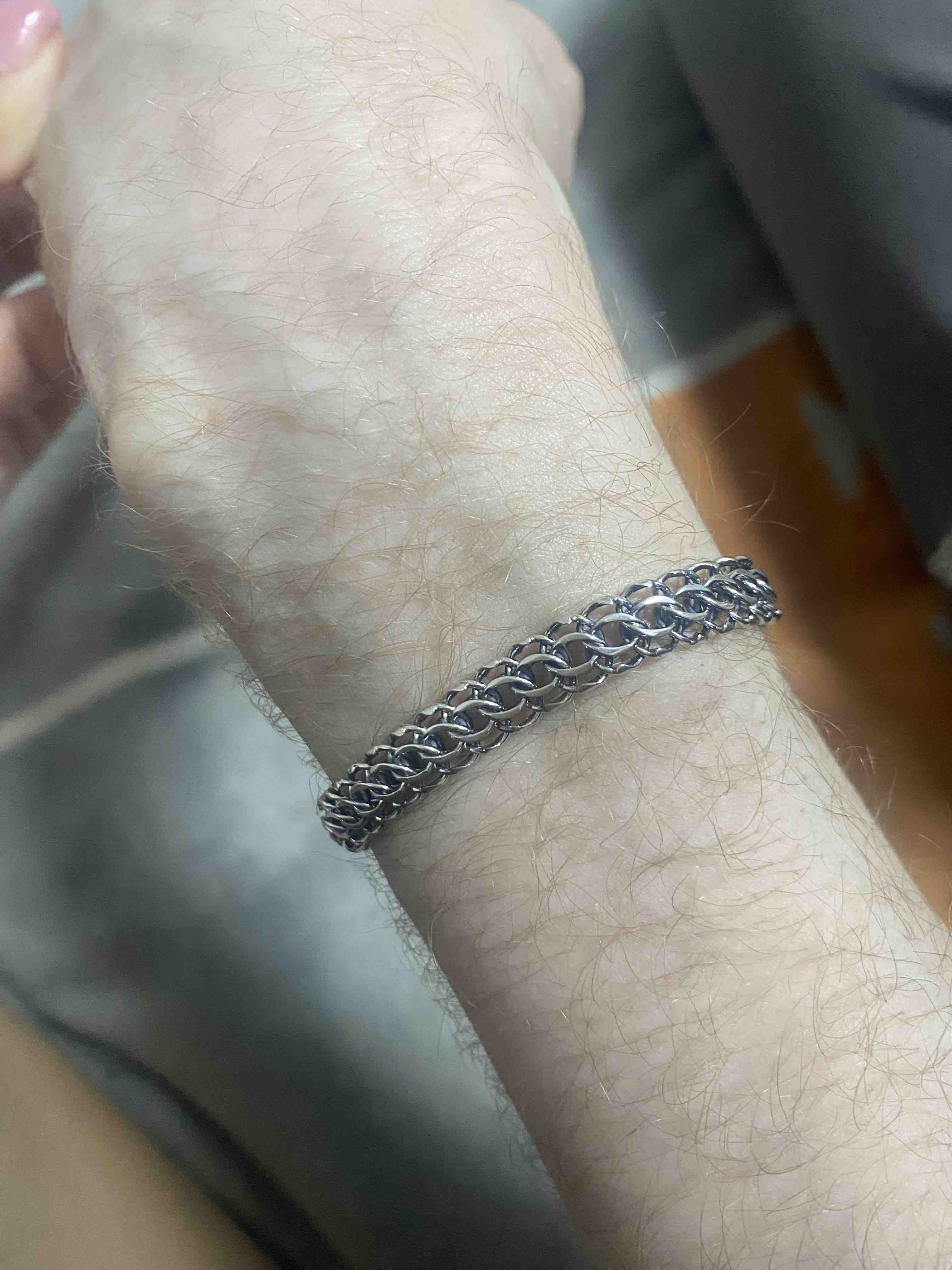 Очень красивый браслет! Смотрится дорого, жена очень довольна)Куплю ещё такую цепочку .